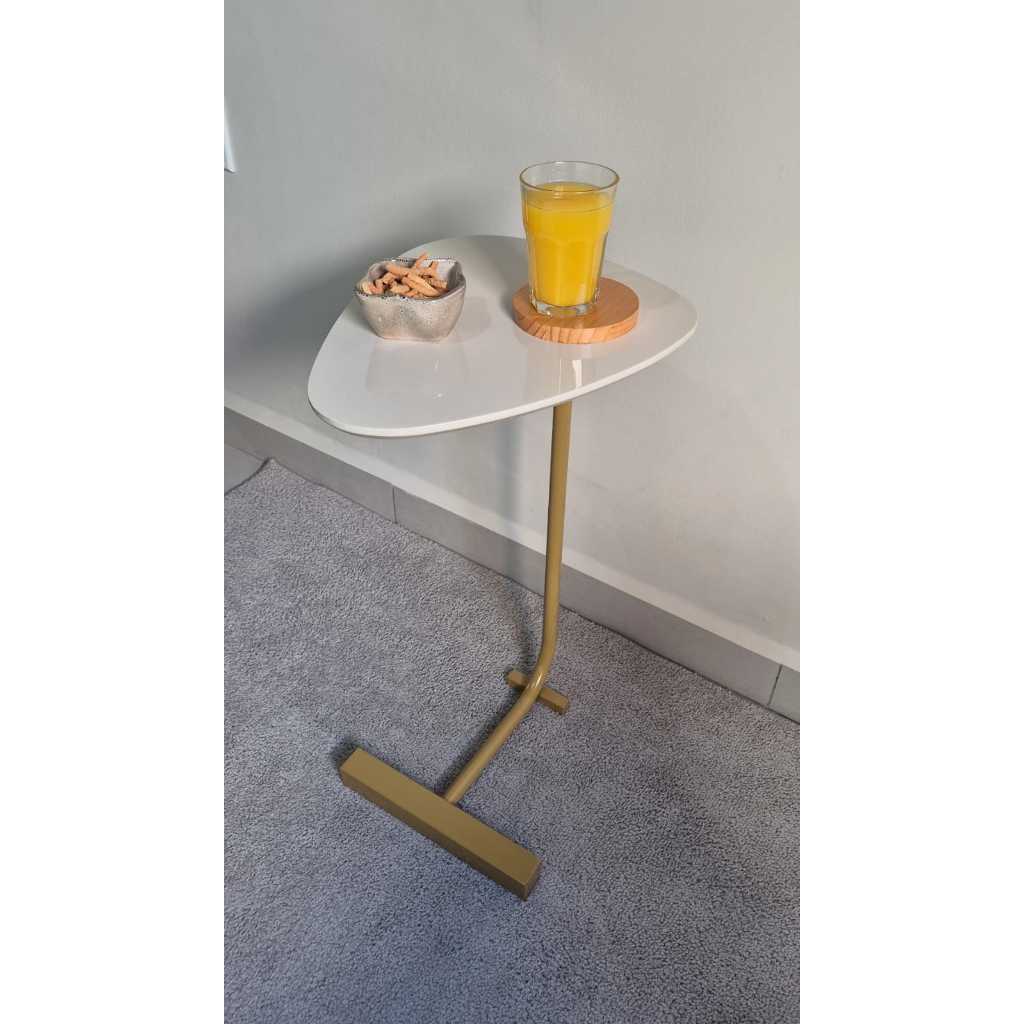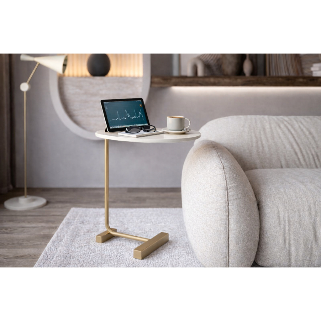Mesa para Braço de Sofá de Decoração Apoio Canto Lateral - Base Metal Dourada e Tampo Off White
