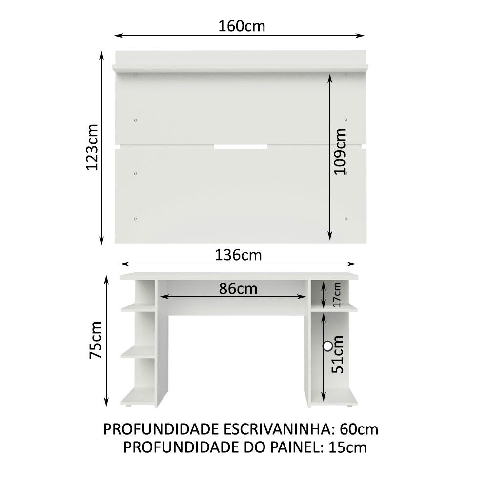 Mesa para Computador Gamer Madesa 9409 e Painel para TV até 65 Polegadas - Branco