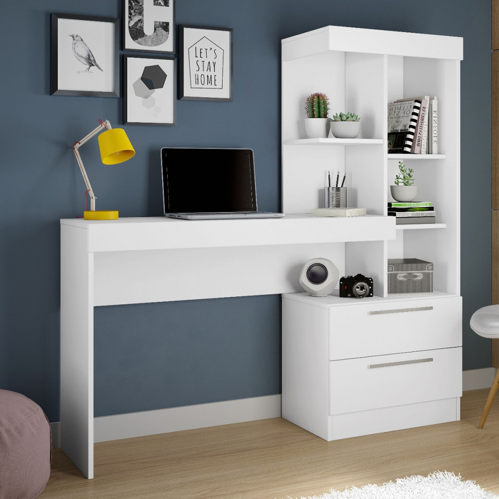 Mesa para Escritório com Estante e 2 Gavetas Flex Office Notável