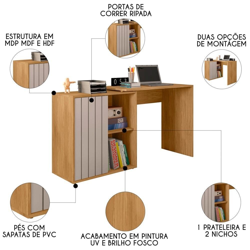 Mesa para Escritório Home Office 1 Porta Ripada Tech Mel/Cacao - Caemmun