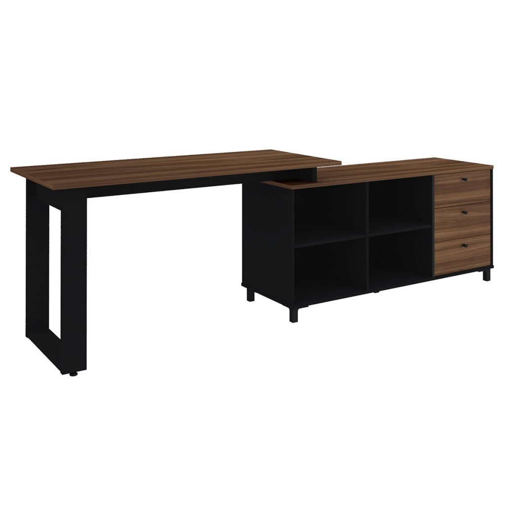 Mesa para Escritório Next 3 Gavetas 2 Prateleiras Ipê/Preto - Artany Móveis