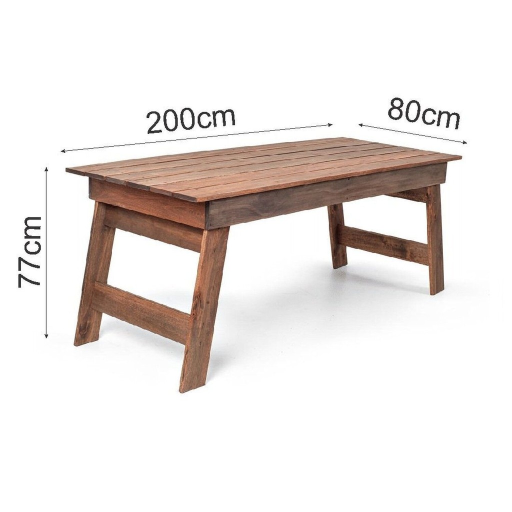 Mesa Churrasco Gran Rústico Linhas retas e simétricas fazem da mesa uma linda peça que vai deixar sua área de festa, jardim, varanda ou piscina ainda mais especial. Você pode aproveitar os momentos de lazer e quando não estiver usando pode dobrar as pernas da mesa para guardar e otimizar o espaço. A mesa é construído em madeira maciça de eucalipto, o acabamento Rústico é feito com STAIN na tonalidade Nogueira. Esse tipo de acabamento não forma filme, permitindo que a madeira trabalhe de acordo com as condições climáticas, além de possuir proteção UV e hidrorepelente. Itens inclusos - 1 mesa Mesa Medidas (cm) - 200 comp. x 80 larg. x 77 alt. Estilo: Rústico Formato: Retangular Peso (kg): 14 Garantia: 03 Meses Altura (cm): 77 Acabamento: Stain Extensível: Não Largura (cm): 200 Design da Base: 4 Pés Possui Gavetas: Não Suporta Até (kg): 39 Profundidade (cm): 80 Escala de Brilho: Fosco Serviço Montagem: 114259443 Material do Tampo: Madeira Maciça Origem do Produto: Nacional Ambiente Principal: Jardim e Varanda Espessura do Tampo (mm): 22 Material Principal: Madeira Maciça Acabamento do Tampo: Stain Quantidade de Lugares: 8 Tipo de Madeira Maciça: Eucalipto Informações Complementares (Novo): Por ser um produto rústico produzido 100% de madeira, pode possuir nós, reveses e diferenças na tonalidade de cor das peças, isso é normal e atesta a autenticidade da madeira natural. Como outras madeiras, o eucalipto também reage às condições de uso e Tipo de Madeira Maciça do Tampo: Eucalipto Marca: Viva Ligna Cor do Produto: Nogueira Itens Inclusos: 1 Mesa Cor Predominante: Marrom Medida do Tampo (L x C x E): 80 x 200 x 2,2