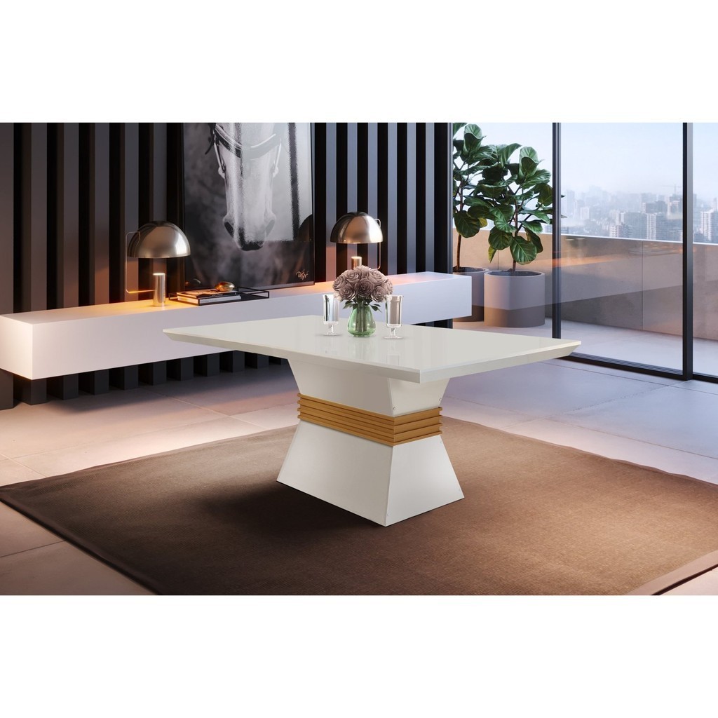 Mesa para Sala de Jantar 120cm Tampo MDF Canto Reto Clarice Off White/Imbuia