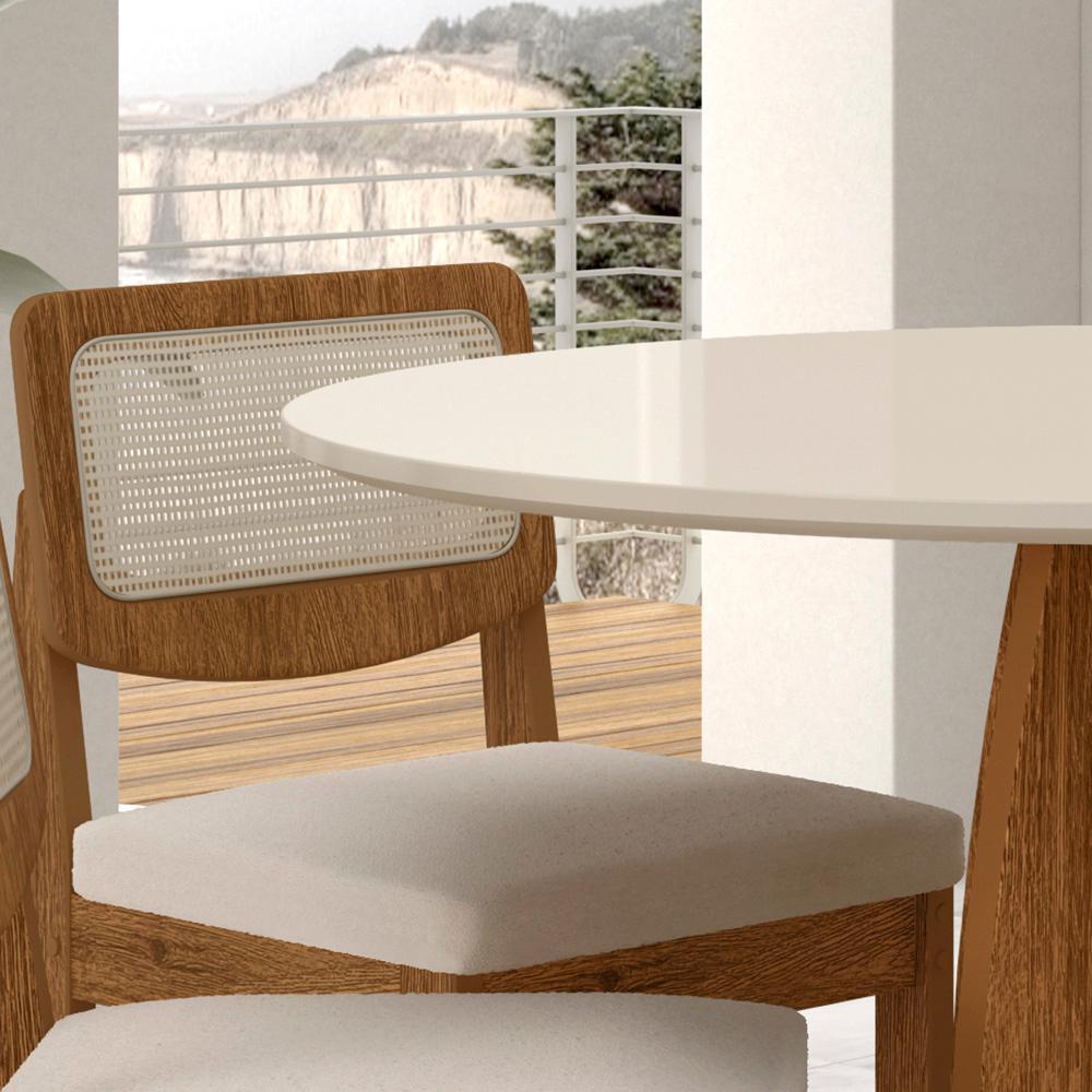 Mesa Redonda Camogli 4 Cadeiras Sextavadas Freijó/off/bouclé Off - M.a