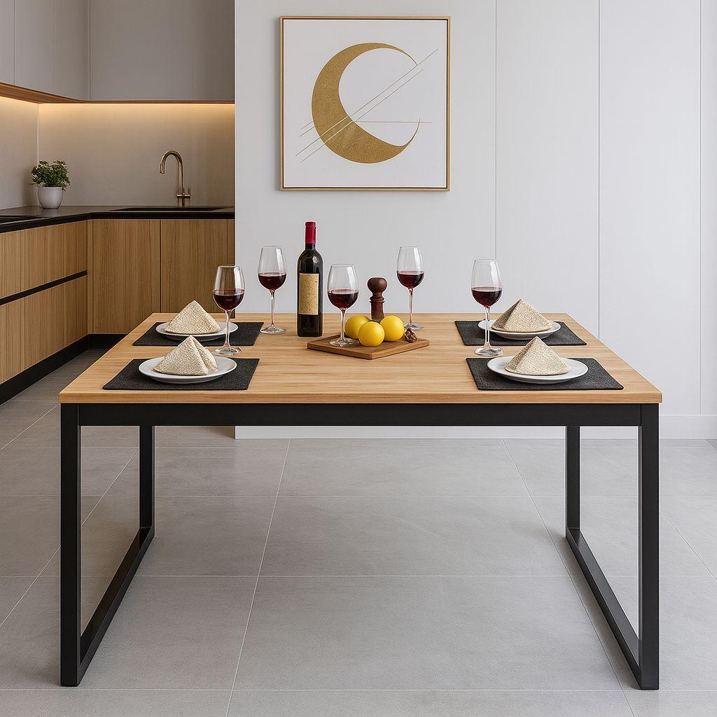 Mesa Retangular Industrial 120x80 cm com Design Robusto em Metal e Tampo de Madeira