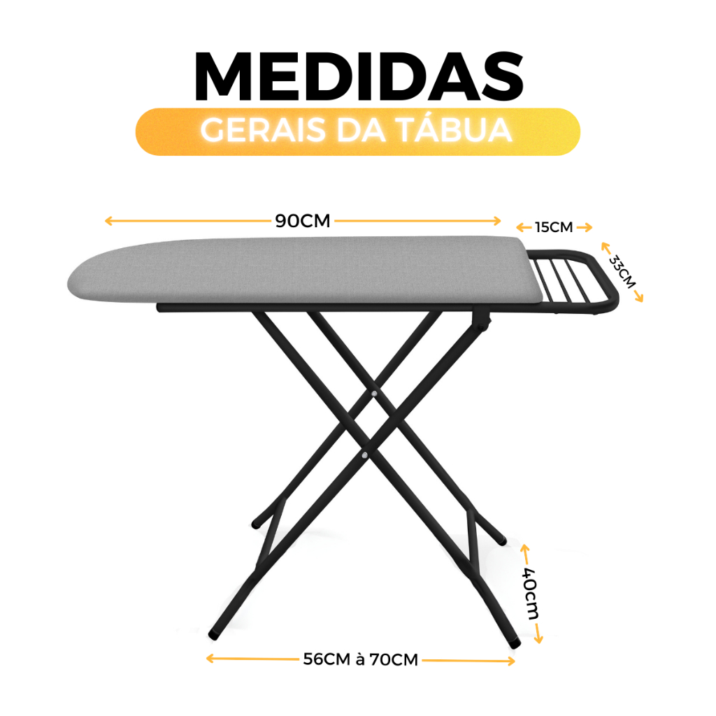 Mesa Tabua De Passar Roupa 117cm Suporte Porta Ferro Extra Forte 3 Medidas De Regulagem Resistente