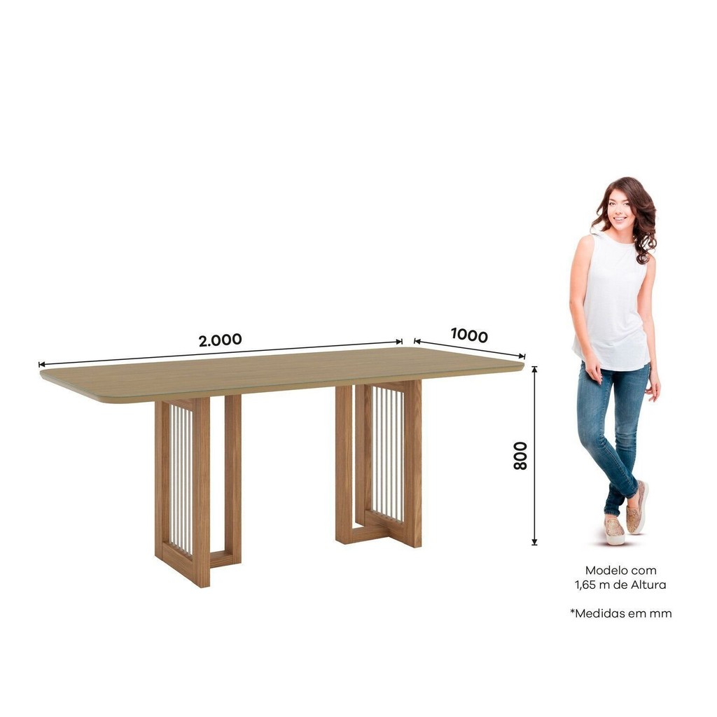 Mesa Yara para 6 Lugares Tampo de 200cm Canto Arredondado