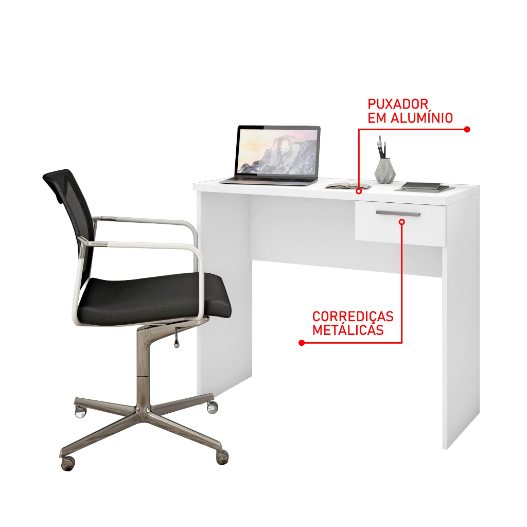 Mesinha Computador Multiuso Quarto Sala Escritório Escrivaninha Office NT 2000 Com 1 Gaveta Branco New Notável