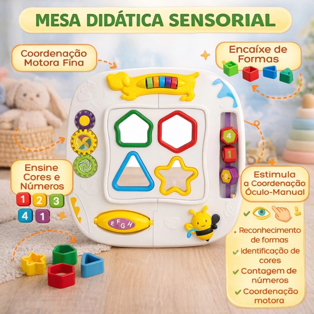 Mesinha Didática Infantil Educativa Sensorial Mesa Divertida Atividades Interativas Pedagogica Formas Encaixar