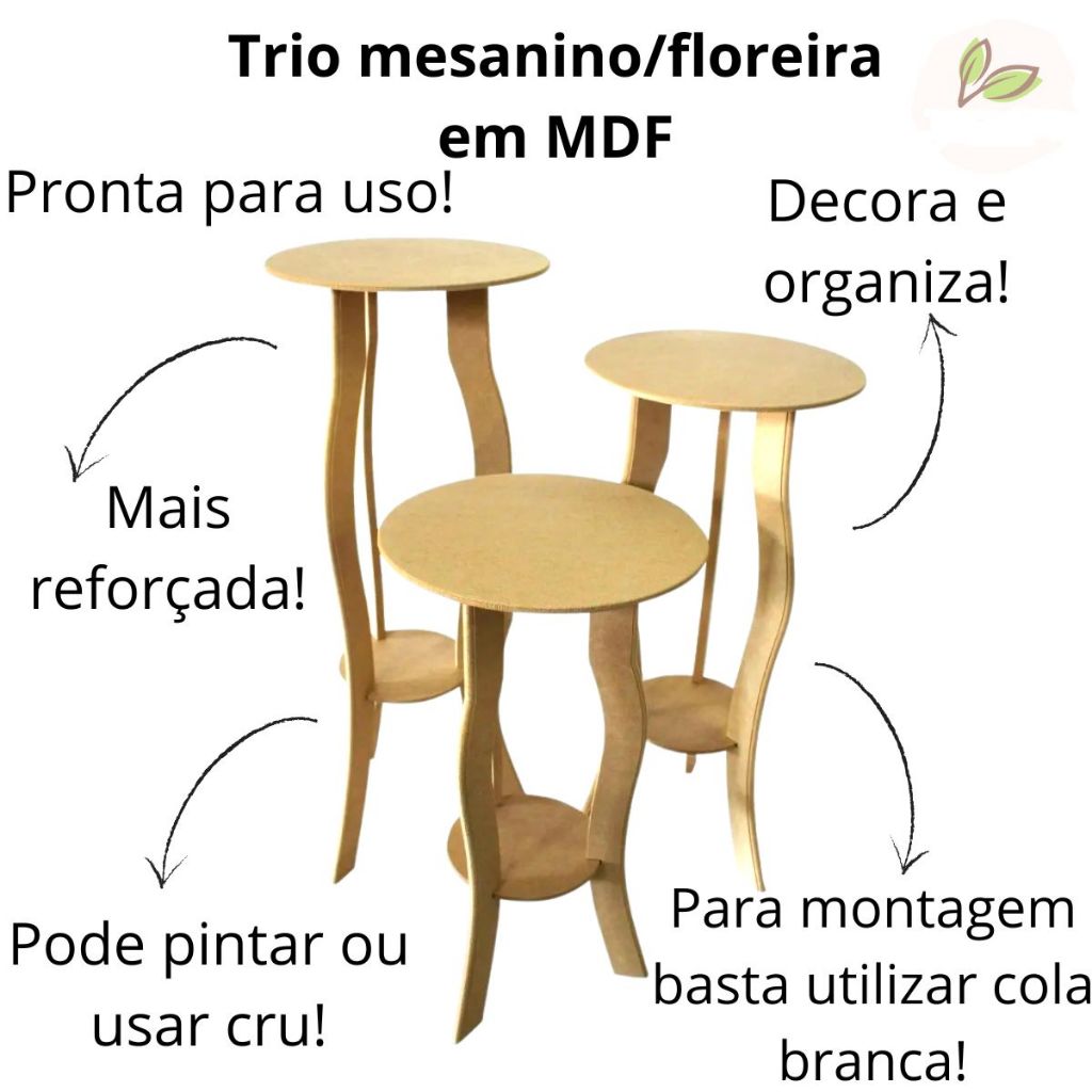 O **Kit Trio de Mesinhas para Floreira em MDF** é uma solução encantadora e funcional para quem deseja agregar charme e organização a ambientes internos ou externos. Ideal para decoração de festas, jardins, varandas ou até como parte de uma composição em eventos, essas mesinhas são versáteis e podem ser utilizadas de diversas formas. ### Características do Kit Trio de Mesinhas para Floreira: - **Material**: Fabricado em MDF de alta qualidade, o que garante resistência, durabilidade e um acabamento suave e sofisticado. O MDF também é fácil de limpar e manter, tornando o produto prático para uso em diversos ambientes. - **Design**: O kit possui um design clean e minimalista, com linhas retas e contornos simples, mas elegantes. Perfeito para complementar a decoração de eventos ou dar um toque especial em espaços ao ar livre, como jardins, pátios e varandas. - **Tamanhos**: O kit é composto por três mesinhas de tamanhos variados, permitindo uma combinação harmoniosa e adaptável ao espaço disponível: - **Mesinha 1**: 70 x 30 cm - **Mesinha 2**: 60 x 30 cm - **Mesinha 3**: 50 x 30 cm A variação no tamanho das mesinhas proporciona um efeito visual dinâmico, permitindo que elas sejam dispostas de maneira estratégica para criar uma composição interessante e equilibrada. - **Função**: Essas mesinhas foram projetadas especialmente para funcionar como floreiras, ou seja, para acomodar plantas e flores. Seu tamanho ideal permite que sejam usadas com vasos de diversos tipos, desde os menores até os mais altos. Também podem ser usadas para decorar ambientes com objetos de estilo, como velas, potes decorativos ou outros elementos de decoração. - **Versatilidade**: Embora seu uso principal seja como floreira, o kit de mesinhas também pode ser adaptado para outros fins, como apoio para bebidas e petiscos em festas, ou até mesmo como suporte para objetos decorativos em eventos temáticos. - **Acabamento**: A superfície do MDF pode ser personalizada com pintura, verniz, adesivos ou outros tipos de acabamentos, adaptando-se ao tema da decoração. Isso torna as mesinhas ideais tanto para ambientes modernos quanto mais rústicos ou clássicos. - **Montagem e Armazenamento**: As mesinhas são fáceis de montar, facilitando o transporte e o armazenamento após o uso. A estrutura prática e robusta permite que sejam usadas em diversos tipos de ambiente, tanto internos quanto externos. (PRODUTO ENVIADO DESMONTADO) ### Vantagens: - **Estabilidade e Segurança**: A base firme das mesinhas garante que as plantas ou objetos decorativos fiquem estáveis e seguros. - **Adaptabilidade**: Pode ser usada em diferentes cenários e com diferentes tipos de decoração. - **Praticidade**: Facilidade no transporte e armazenamento graças à estrutura compacta e desmontável. - **Personalização**: Possibilidade de personalizar o acabamento conforme o gosto ou tema da decoração. Esse kit de mesinhas para floreira é uma excelente escolha para quem busca aliar funcionalidade, beleza e praticidade na decoração, seja para eventos, festas ou para o uso diário em ambientes internos e externos.