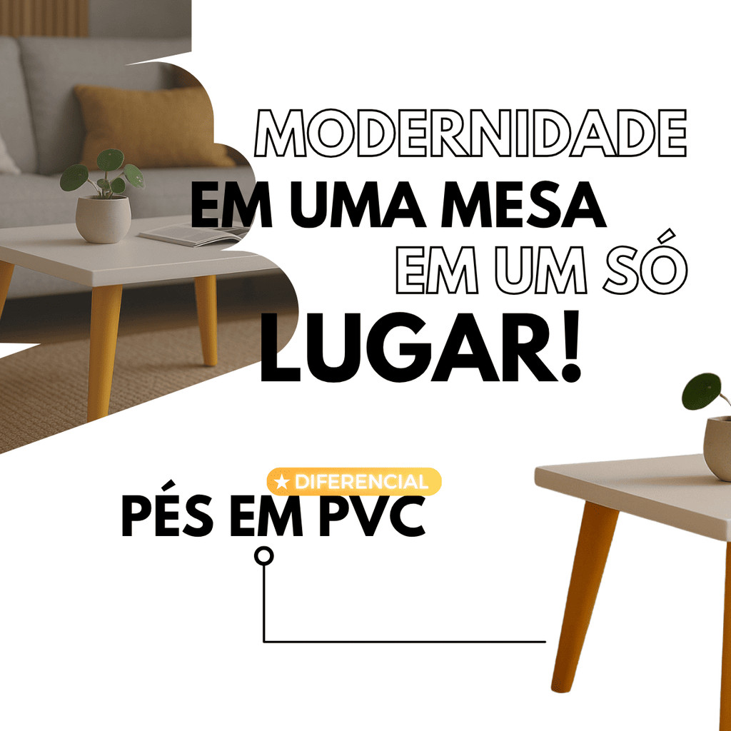 Mesinha Retangular De Centro Com Pés Palito PVC Tampo MDF Retro Decoração Sala De Estar Modernic
