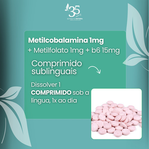 Metilcolamina (Vitamina B12) + Metilfolato + Vitamina B6 A metilcobalamina é a forma mais ativa de vitamina B12. A vitamina B12 está presente em diversas funções metabólicas do organismo e pode ser incluída na rotina alimentar conforme necessidade individual. Metilfolato é a forma ativa do ácido fólico e a Vitamina B6 na forma de piridoxina. Este produto é um suplemente dietético e não um medicamento. COMPOSIÇÃO: Metilcobalamina (Vitamina B12) 1mg + Metilfolato 1mg + Vitamina B6 15mg (sublingual) SUGESTÃO DE USO: Dissolver 1 comprimido sob a língua, 1x ao dia ou de acordo com orientação médica. ATIVOS AUTÊNTICOS. Produto manipulado. Validade: 6 meses. Produto a pronta entrega com envio em até 24 horas. ANVISA RDC N27/2010.