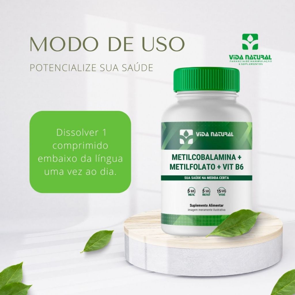 Este poderoso suplemento combina alta dosagem de Metilcobalamina, Metilfolato e Vitamina B6 para oferecer um suporte abrangente à saúde neurológica e ao metabolismo. Ideal para quem busca otimizar a função cognitiva, melhorar a produção de energia e apoiar a saúde cardiovascular, este complexo de vitaminas B é essencial para o bem-estar geral e a saúde mental. Composição: - Metilcobalamina 5mg - Metilfolato 5mg - Vitamina B6 15mg - Obs: Não contém glúten, lactose Benefícios: - Suporte Neurológico - Produção de Energia - Saúde Cardiovascular Modo de uso: - Dissolver 1 comprimido embaixo da lingua uma vez ao dia ou conforme orientação do profissional habilitado. Validade: - 4 Meses após a fabricação As imagens postas são meramente ilustrativas Idade mínima recomendada: 18 anos. Este produto é um suplemento dietético, não um medicamento. Suplementa dietas insuficientes. Consulte o seu médico e/ou farmacêutico. Perguntas frequentes: - Qual é a diferença entre Metilcobalamina e outras formas de Vitamina B12? A Metilcobalamina é a forma ativa da Vitamina B12, que é mais facilmente absorvida e utilizada pelo corpo, especialmente para funções neurológicas. - Por que o Metilfolato é importante? O Metilfolato é a forma bioativa do ácido fólico, essencial para a síntese de DNA e RNA, e crucial para a saúde celular e cardiovascular. - Como a Vitamina B6 contribui para a saúde geral? A Vitamina B6 é vital para o metabolismo de proteínas, produção de neurotransmissores e regulação hormonal, além de apoiar a função imunológica e a saúde do sistema nervoso.