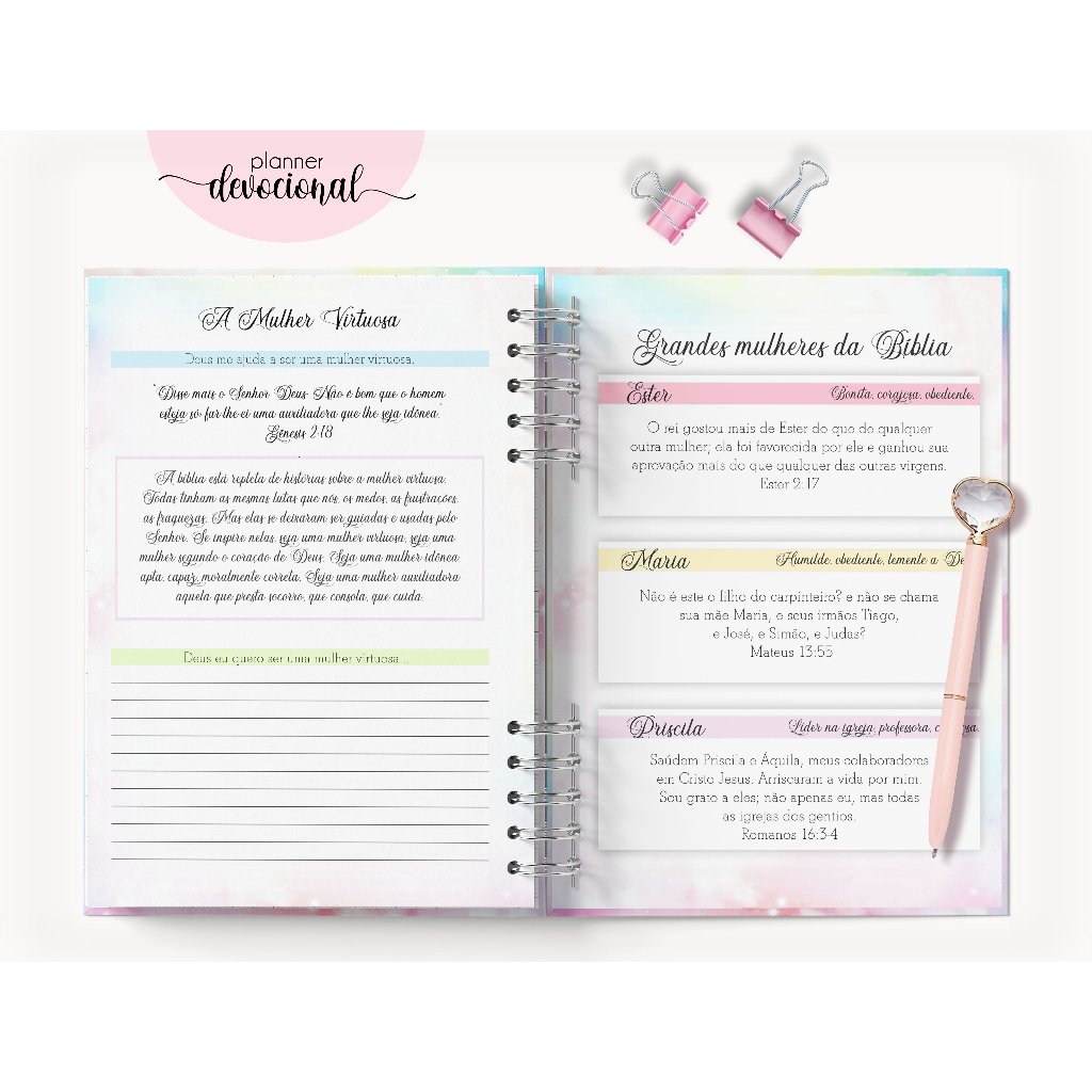 Caderno Devocional Tamanho A5 (15,5x21,5cm) Total de Folhas:100folhas 200 paginas ENVIO EM DIAS ÚTEIS Capa Dura - Laminada com BOPP Laminação com brilho, caso queira com o nome a ser personalizado mandar pelo chat IMEDIATAMENTE A laminação é uma película protetora aplicada à capa para que esta possa ser limpa com pano úmido e se torne resistente a gotículas de água. Encadernação Wire-o Branco. Normalmente mandamos o Wire-o dividido, como na foto. - NÃO INCLUI NENHUM ITEM A MAIS, SOMENTE O CADERNO DEVOCIONAL Após concluir sua compra vc deve informar no chat o nome para personalização da capa. Caso o nome não seja informado, capa ira sem o nome.