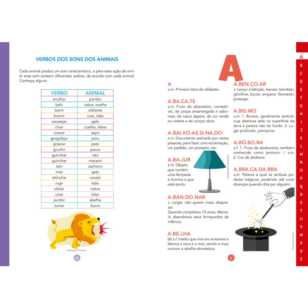 Este dicionário tem mais de 2.000 palavras para ampliar seu vocabulário enquanto você se diverte com várias ilustrações. Todos os verbetes vêm com a classe gramatical e separação silábica indicadas. Além disso, você vai encontrar a aplicação de algumas dessas palavras em frases, para tornar o seu aprendizado ainda mais interessante. Folheie as páginas e descubra o mundo de A a Z! Editora: Ciranda Cultural Edição: 1, 2017 Autor: Ciranda Cultural Idioma: Português Páginas: 256 Dimensões: L 15.50 x A 23.00 x E 1.40 ISBN: 9788538068600