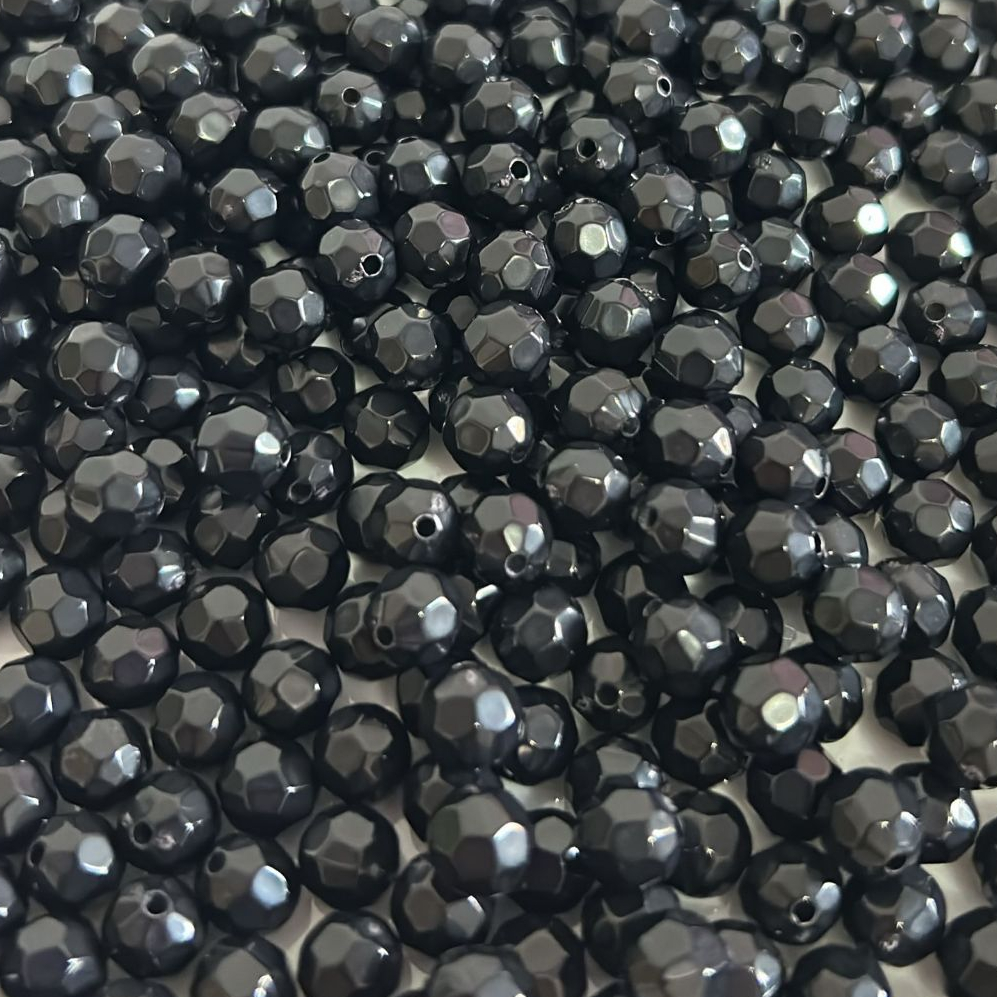 Miçanga Bola Sextavada Preta Passante 8mm P/Pulseira Colar
