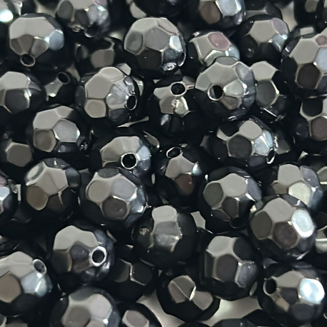 Miçanga bola sextavada preta passante Perfeito para confecção e customização de pulseira, colar, chaveiro, corrente de celular e artesanato em geral. Ficha técnica: Material: acrílico Pacote com 50g( aproximadamente 180 peças ) Pacote com 100g( aproximadamente 360 peças ) Tamanho: 8mm
