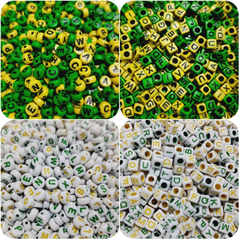 Miçanga com letras 100 unidades verde e amarelo Brasil