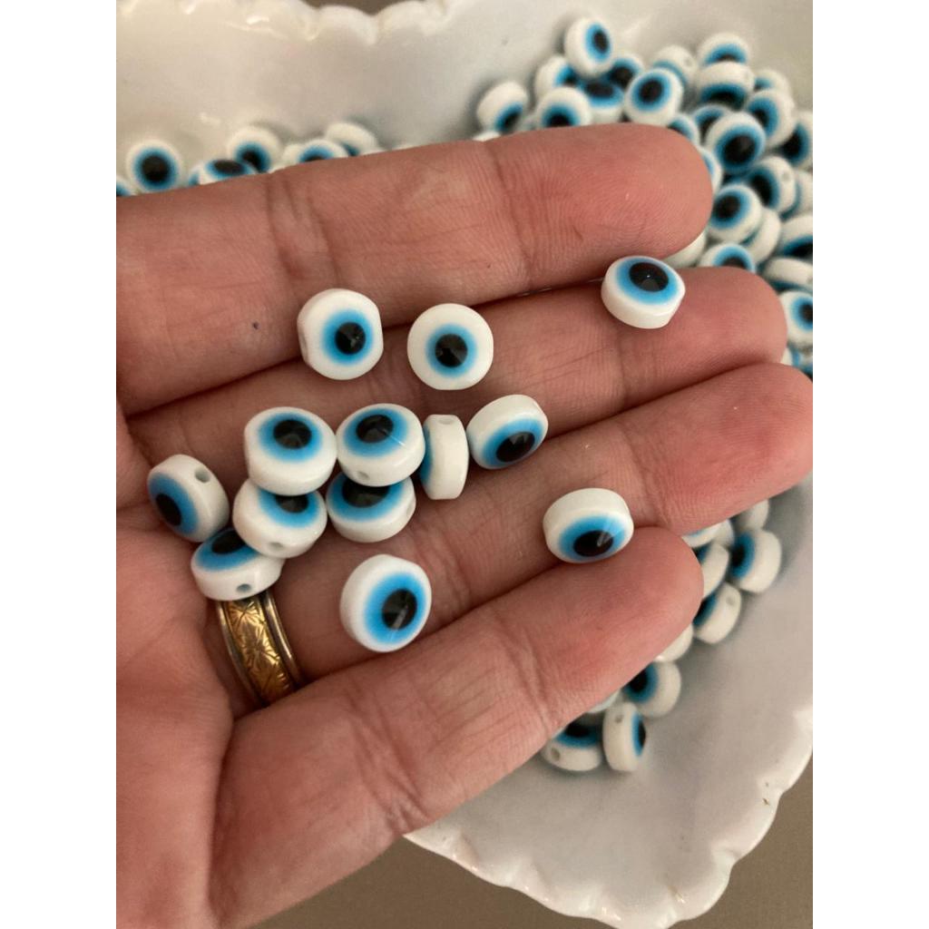 Miçanga de Olho GregoAchatado Para Entremeio 8mm 50/100/200