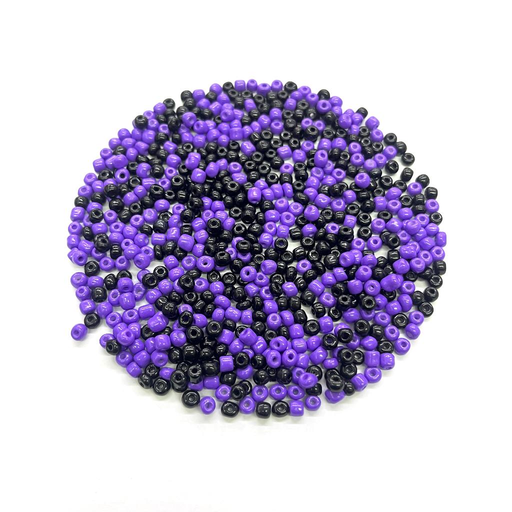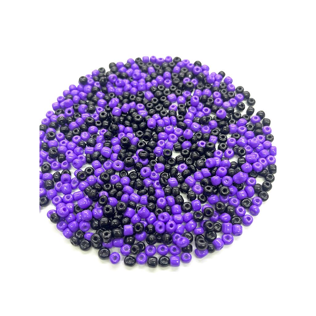 Miçanga de Vidro - 6/0 - Preta e Roxa (aprox. 590 Peças)