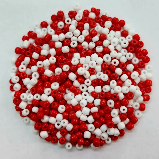 Miçanga de Vidro 6/0 Vermelha e Branca (aprox. 590 Peças)