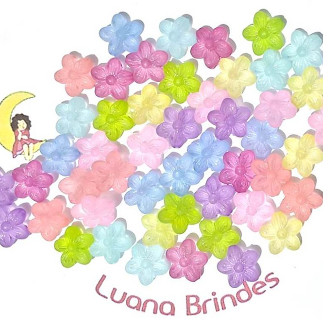 Miçanga Flor Translucida 15mm Acrílico Pacote Com 50 Unidades Colorida