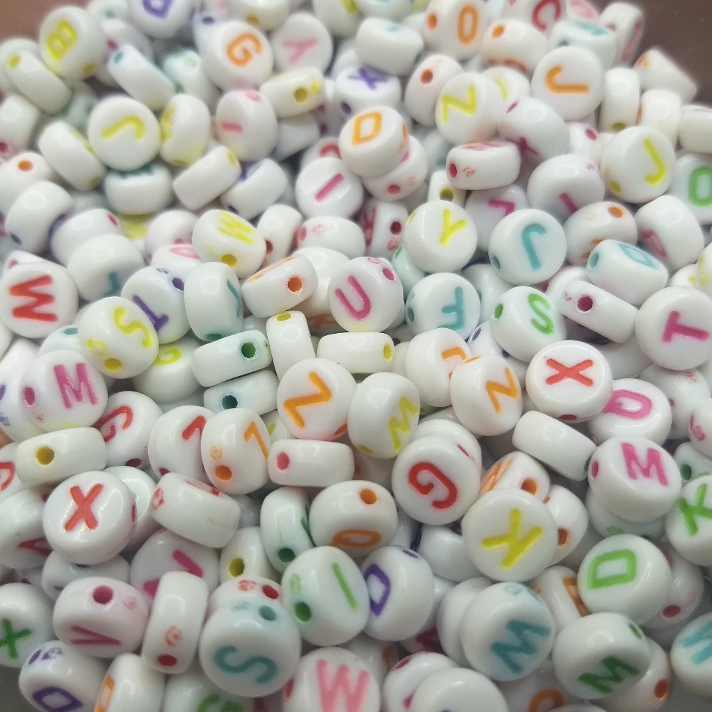 MIÇANGA LETRAS Aprox. 600 UNIDADES BRANCA COM LETRAS COLORIDAS