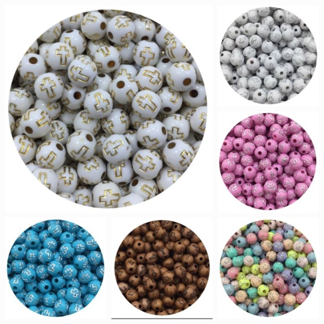 Miçangas Entremeios Bola com cruz 8mm-100 unidades para terços Artigos Religiosos