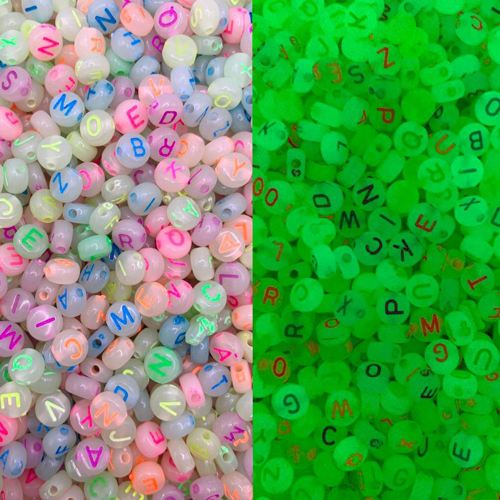Miçangas de Letra que Brilham no Escuro - Crie e Brilhe! Dê asas à sua criatividade com nossas miçangas de letra que brilham no escuro! Perfeitas para personalizar pulseiras, colares, chaveiros e muitos outros acessórios. As miçangas são redondas e vêm em diferentes quantidades, ideais para qualquer projeto artesanal. Características do Produto: Formato: Miçangas redondas com letras que brilham no escuro. Variedade de Tamanhos: Disponíveis em pacotes de: 20g (150 peças) 40g (300 peças) 60g (450 peças) 80g (600 peças) 100g (750 peças) Perfeito para: Criar acessórios personalizados, educativos ou para presentear com estilo único, seja de dia ou à noite, com o charme do brilho no escuro. Ilumine sua criatividade com essas miçangas que vão destacar suas criações, tornando cada peça única e especial!