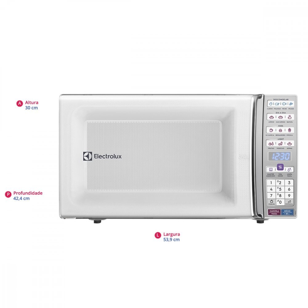 Prepare diversas receitas com o Micro-ondas de Bancada MEO44 da Electrolux. Além de poder preparar receitas básicas do dia a dia, o micro-ondas ainda vem com Menu Light para preparar receitas mais saudáveis. Você terá seu micro-ondas sempre limpo e sem cheiro forte, pois ele vem com a função Tira Odor. Assim, você ficará com a sua cozinha agradável e sem mau-cheiro, podendo preparar receitas diferentes, uma atrás da outra. Com esse micro-ondas de bancada você manterá suas comidas sempre quentinhas através da função Manter Aquecido. Aprenda as receitas do menu assistindo aos vídeos no seu celular com o QR Code e prepare as receitas preferidas das crianças com o Menu Kids. Características: Menu de Receitas Menu Kids Prato Giratório Trava de Segurança Menu Dia a Dia Menu Light Relógio Dimensões: Altura: 30 cm Largura: 53,9 cm Profundidade: 42,4 cm Peso: 16 kg Garantia do Fornecedor: 12 meses