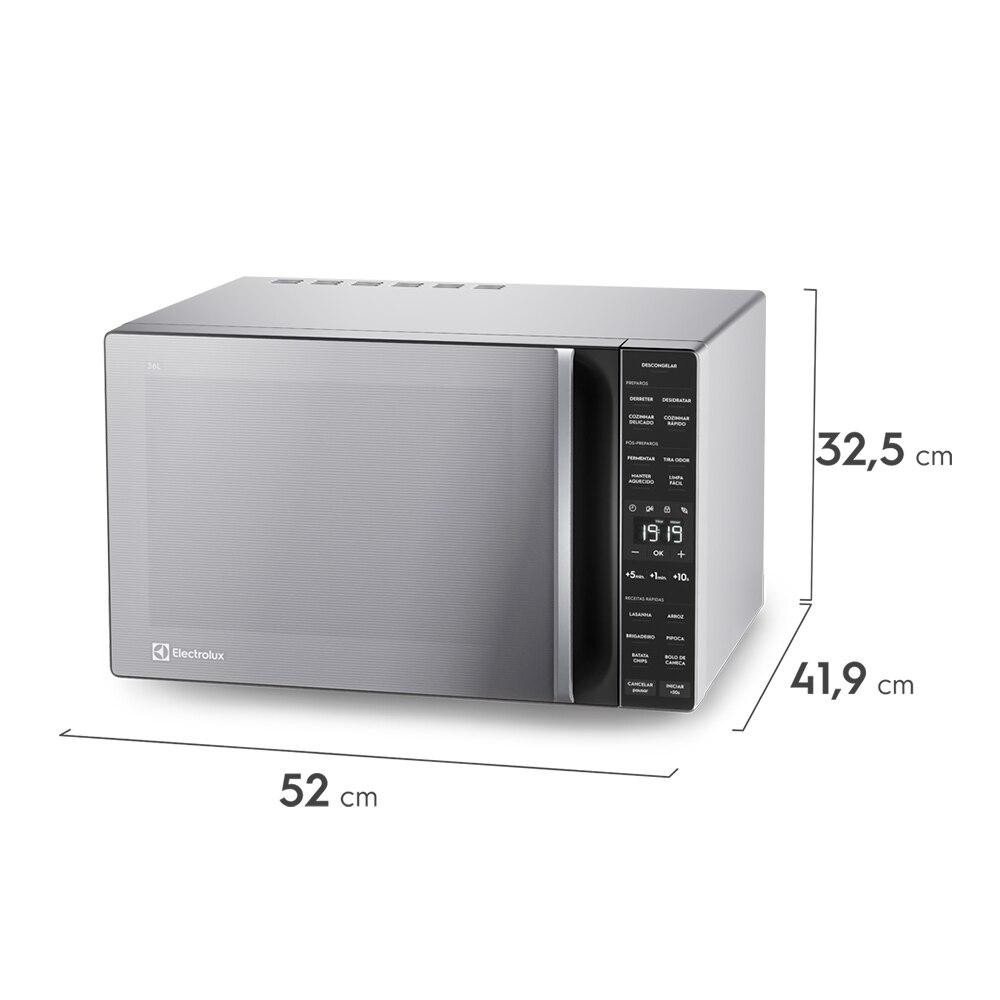 Micro-ondas Electrolux 36L ME36S Inox: Tecnologia e Sofisticação na Sua Cozinha O Micro-ondas Electrolux ME36S em Inox é a escolha ideal para quem busca capacidade e um design elegante. Com 36 litros, ele acomoda pratos e travessas grandes, sendo perfeito para famílias que precisam de mais espaço. Sua tecnologia Tira Odor elimina cheiros de alimentos, como alho e peixe, mantendo o interior sempre fresco e limpo. A limpeza é simples e rápida, graças ao revestimento Limpa Fácil que impede que a sujeira e a gordura grudem na superfície. A usabilidade é intuitiva e moderna: um QR Code na porta permite que você acesse diversas receitas e dicas direto do seu celular, enquanto o Menu Descongelar descongela carne, frango, peixe e feijão de forma uniforme. A trava de segurança garante tranquilidade em lares com crianças. Benefícios Acabamento em Inox: Design moderno e sofisticado que valoriza sua cozinha. Tira Odor: Elimina odores fortes, mantendo o ambiente mais agradável. Limpeza Descomplicada: Revestimento interno Limpa Fácil que simplifica a remoção de resíduos. Amplo Espaço: 36 litros de capacidade, ideal para a família inteira e travessas grandes. QR Code com Receitas: Acesse um Menu Online com inúmeras receitas para inovar na cozinha. Características Técnicas Capacidade: 36 litros Cor: Inox Voltagem: 220V Potência: 800W Tecnologias: Tira Odor, Limpa Fácil, Menu Descongelar e QR Code com receitas. Medidas: (LxAxP) 52 x 32,5 x 42 cm. Tambem procurado como: microndas electolux eletrolux me36 36litros 5 Perguntas Frequentes 1. Este micro-ondas é bivolt? Não. Este modelo é 220V e não é compatível com a rede de 110V. Verifique a voltagem de sua residência antes de comprar. 2. Acompanha o prato giratório? Sim. O produto vem com o prato giratório de vidro, que garante o aquecimento uniforme dos alimentos. 3. O acabamento em Inox mancha com facilidade? O aço Inox, por ser um material metálico, pode ficar com marcas de digitais. Recomendamos a limpeza com um pano macio e produtos específicos para Inox para mantê-lo sempre brilhante. 4. A função "Limpa Fácil" realmente funciona? Sim. O revestimento interno liso foi projetado para que a gordura e os resíduos não grudem, facilitando a limpeza com apenas um pano úmido. 5. Ele descongela os alimentos por peso? Não. O Menu Descongelar possui opções pré-programadas para diferentes tipos de alimentos, ajustando automaticamente o tempo para o melhor resultado.