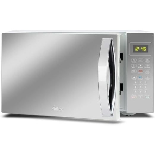 O Micro-ondas Philco possui 6 receitas pré-programadas: brigadeiro, pipoca, lasanha, pizza, bolo de caneca e menu fit, para facilitar ainda mais seu dia a dia. Conta também com função tira odor, que retira o cheiro dos alimentos, mantendo a higiene durante um preparo e outro; função manter aquecido, que mantém os alimentos na temperatura ideal para consumo; e função timer, que desliga automaticamente o aparelho após o tempo selecionado. Para ainda mais praticidade para sua rotina, o Micro-ondas PMO28E descongela de maneira prática carnes, que no geral levam mais tempo para descongelar, por meio do Descongela Fácil. Além disso, é possível adicionar mais tempo durante o preparo com a função +30 segundos. Muita facilidade em um único clique. O Micro-ondas Philco 25L Limpa Fácil PMO28E 1100W é descomplicado até na hora da limpeza, pois conta com pintura Limpa Fácil, que deixa o momento de limpar seu Micro-ondas ainda mais simples e rápido. Tenha mais praticidade no seu dia a dia, conte com o Micro-ondas Philco 25L Limpa Fácil PMO28E 1100W! • Capacidade 25L • Prato com diâmetro de 285mm • Teclas fáceis: FIT e Manter Aquecido • Opções Descongelar por Tempo ou Descongelar por Peso • Função Potência • Função Relógio • Função Display / Sound • Função Tira odor • 1000W de potência • Classe "A" em eficiência energética.