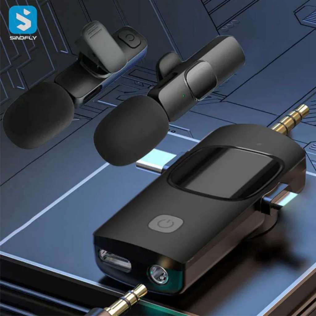 Microfone 3 in 1 Lapela Duplo Sem Fio Entra P2 Type-C e lightning Para Celular Eletro Mex EL-1836
