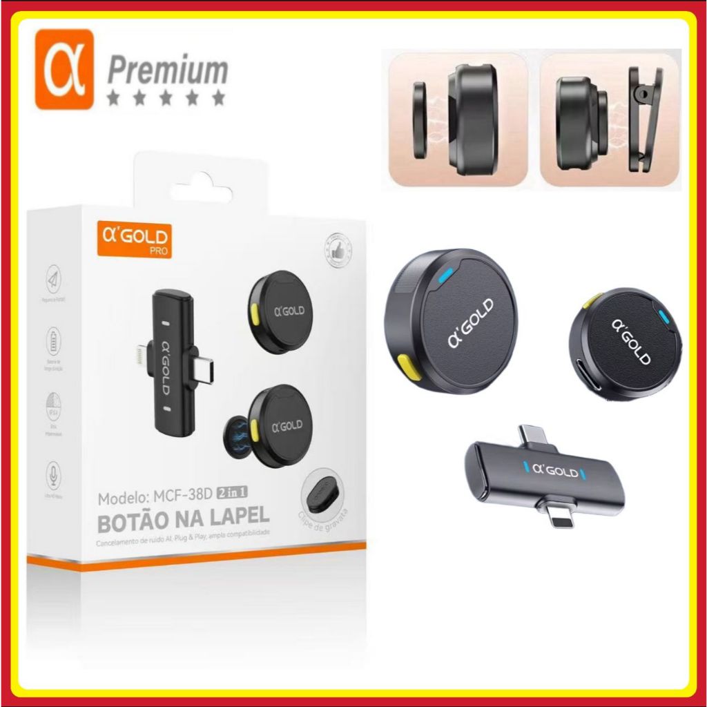 O produto Microfone de lapela duplo redondo magnético A’Gold 2 em 1 iphone tipo c discreto entrevista podcast video é um item na subcategoria Microfones (de Áudio), disponível na Shopee Brasil por R$ 69,99 (50% de desconto sobre o preço original de R$ 139,98). Avaliado em 4.9/5 pelos compradores e 2.363 unidades vendidas, este produto se destaca pelo excelente custo-benefício.