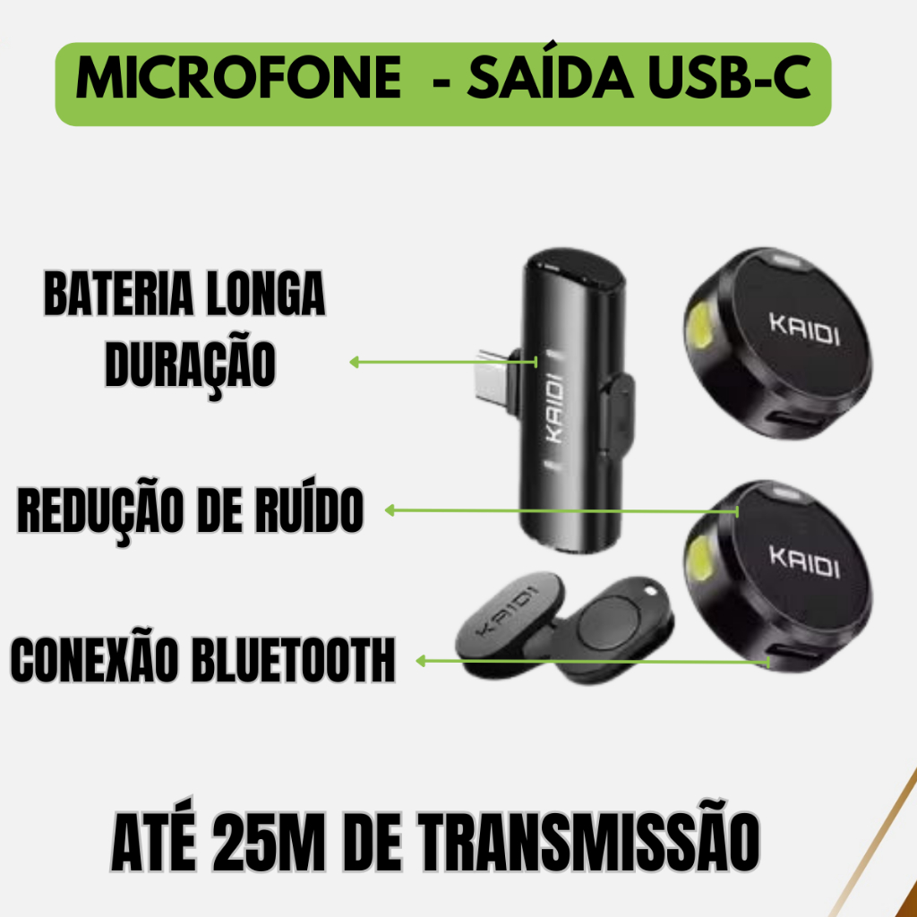 Microfone de Lapela Gravação Vídeo Sem Fio Alta Captação De Som Gravar Com Celular Youtuber