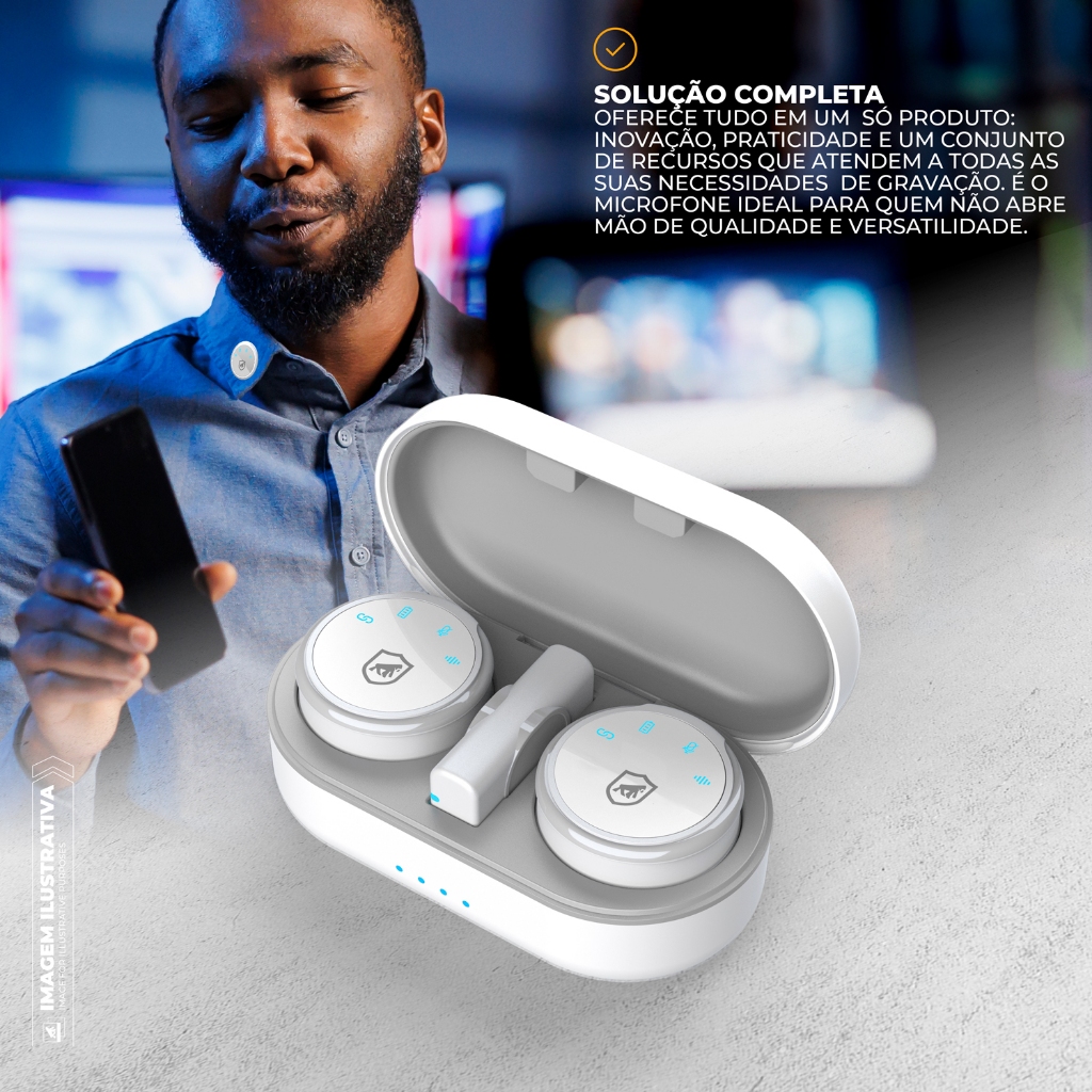 O Microfone de Lapela Magnética Armor Tipo C da Gshield é a combinação perfeita de tecnologia e praticidade, projetado para quem busca qualidade de áudio impecável e facilidade de uso. Seja para gravações profissionais, transmissões ao vivo, aulas online ou vídeos para redes sociais, ele oferece desempenho superior e uma experiência prática e moderna. Com um design inovador, o microfone utiliza um sistema magnético que permite fixá-lo de forma segura e discreta em qualquer peça de roupa. Esse recurso elimina a necessidade de clipes tradicionais, proporcionando maior conforto e liberdade de movimento durante o uso. Compacto e leve, ele é ideal para longas sessões de gravação sem causar incômodo. Equipado com redução de ruído inteligente, o Armor elimina ruídos externos e sons indesejados, destacando sua voz com clareza. Isso garante um áudio limpo e profissional, mesmo em ambientes ruidosos ou ao ar livre. Além disso, o sistema sem fio de alta estabilidade oferece uma conexão confiável e sem interrupções, com alcance ideal para diversas aplicações. O receptor tipo C é compatível com uma ampla gama de dispositivos, e o kit acompanha um adaptador Lightning, garantindo versatilidade para utilização com dispositivos iOS. Com a tecnologia Plug and Play, o microfone dispensa configurações complicadas ou aplicativos adicionais: basta conectar o receptor ao dispositivo e começar a usar imediatamente. A praticidade do estojo de carregamento portátil é outro destaque. Além de armazenar os dois microfones e o receptor de forma segura, ele recarrega os dispositivos rapidamente, oferecendo autonomia suficiente para gravações prolongadas. Cada microfone possui indicadores de status, permitindo monitorar facilmente o nível de bateria e a conectividade. O Microfone de Lapela Magnética Armor Tipo C Gshield é projetado para quem busca eficiência, versatilidade e qualidade de áudio superior. Seja para criadores de conteúdo, professores, jornalistas ou profissionais que precisam de um áudio impecável, este microfone oferece uma experiência completa e descomplicada. ESPECIFICAÇÕES Marca: Gshield Material: Plástico ABS resistente SNR (Relação Sinal-Ruído): 64 DBM Distância de transmissão: 20-30 metros sem obstáculos Captação de Áudio: Omnidirecional (captura som de todas as direções com alta fidelidade) Capacidade de bateria lapela: 50mAh Vida útil da bateria: 5-6 horas Capacidade de bateria estojo: 200mAh Faixa de frequência: 20-20KHZ Sensibilidade: -42DB Peso: Microfone: 12g cada | Estojo de carregamento: 120g Dimensões: Microfone: 4 cm de diâmetro | Estojo: 10 x 6 x 3 cm Certificação: ANATEL - 087902413975 INCLUSO 2x Microfones transmissores 1x Receptor 1x Adaptador lightning 1x Estojo de carregamento 1x Cabo de carregamento 1x Manual do usuário COMPATIBILIDADE Dispositivos com entrada Tipo C / Lightning