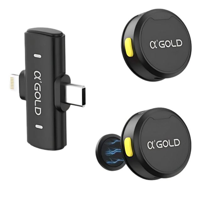 Microfone De Lapela Sem Fio Magnetico 2 Em 1 Lightning E Type-c AGOLD MCF-38D
