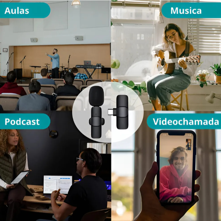 Microfone de Lapela Sem Fio Vlog Live Entrevista Portatil Compatível Tipo C e iPhone