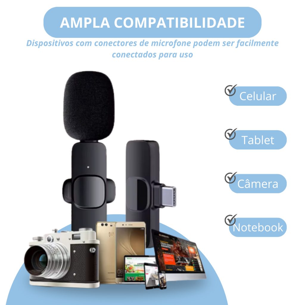 | Microfone Lapela Sem Fio Duplo Kaidi Profissional Portátil Imã Redo... | R$ 74,80 | 50% | 4.8/5 | 4.2 mil |