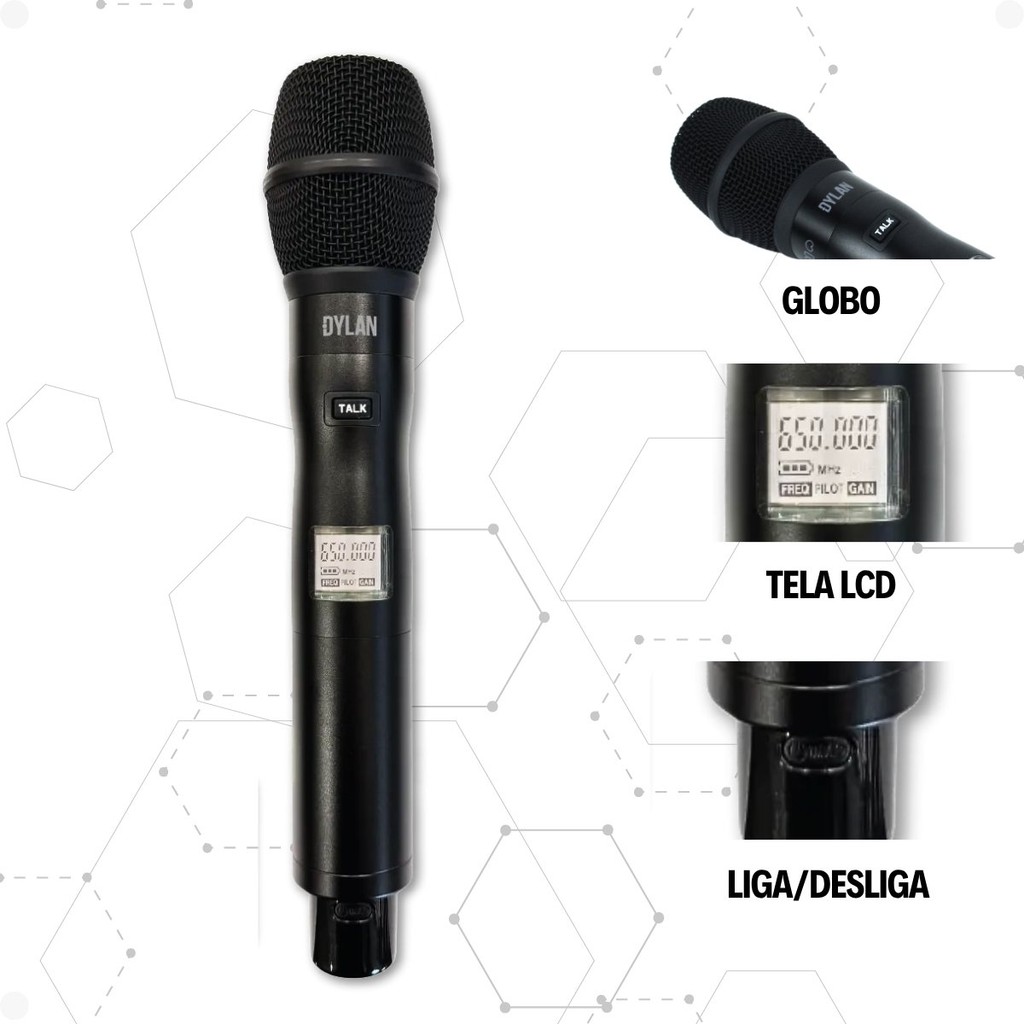 Microfone Dylan Sistema Sem Fio D9001TB com Função Talkback