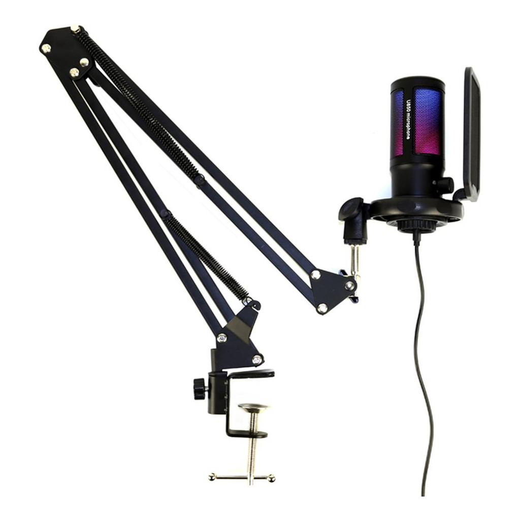 Microfone Gamer Condensador Led Rgb + Braço Articulado