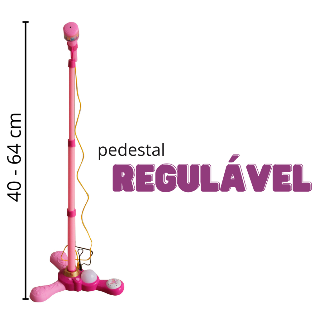 Microfone Infantil Rosa com Pedestal, Luz Colorida, Som e Alto Falante para Crianças