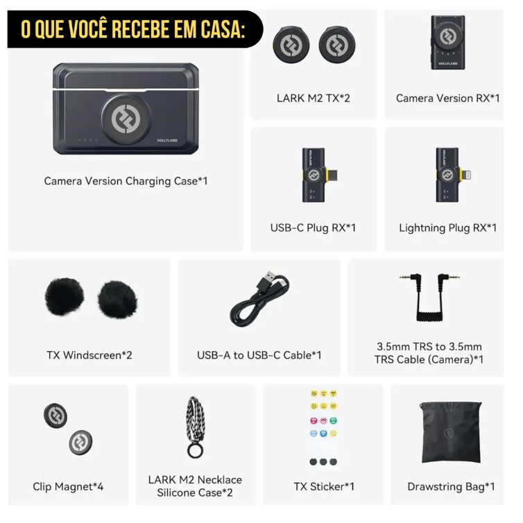 🎤 Hollyland Lark M2 – Microfone Sem Fio Profissional Ultracompacto Eleve o nível das suas gravações com o Hollyland Lark M2, um sistema de microfone sem fio moderno, potente e extremamente discreto. Ideal para criadores de conteúdo, igrejas, entrevistas, palestras, eventos, aulas online e produções profissionais. 🔊 Qualidade de Áudio Profissional Gravação em 48kHz / 24bit, garantindo som limpo, detalhado e com padrão de estúdio. 📡 Conexão Estável e Longo Alcance Transmissão sem fio confiável, com excelente estabilidade mesmo em ambientes abertos ou movimentados. 🔇 Tecnologia Avançada de Redução de Ruído (ENC) Capta sua voz com clareza e reduz ruídos externos, ideal para gravações em ambientes com movimento. 🔋 Bateria de Longa Duração Até 40 horas de uso com o estojo de carregamento, oferecendo praticidade para gravações prolongadas. Perfeito para vídeos no TikTok, YouTube, entrevistas, gravação de palestras, eventos ou transmissões ao vivo. Capture áudio profissional com mobilidade e praticidade!