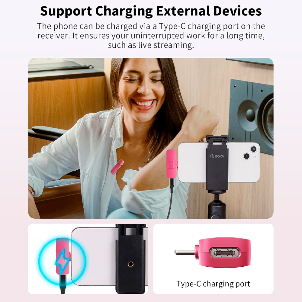 Microfone Lapela Boya By-v10 p/iPhone 15 e Android Rosa