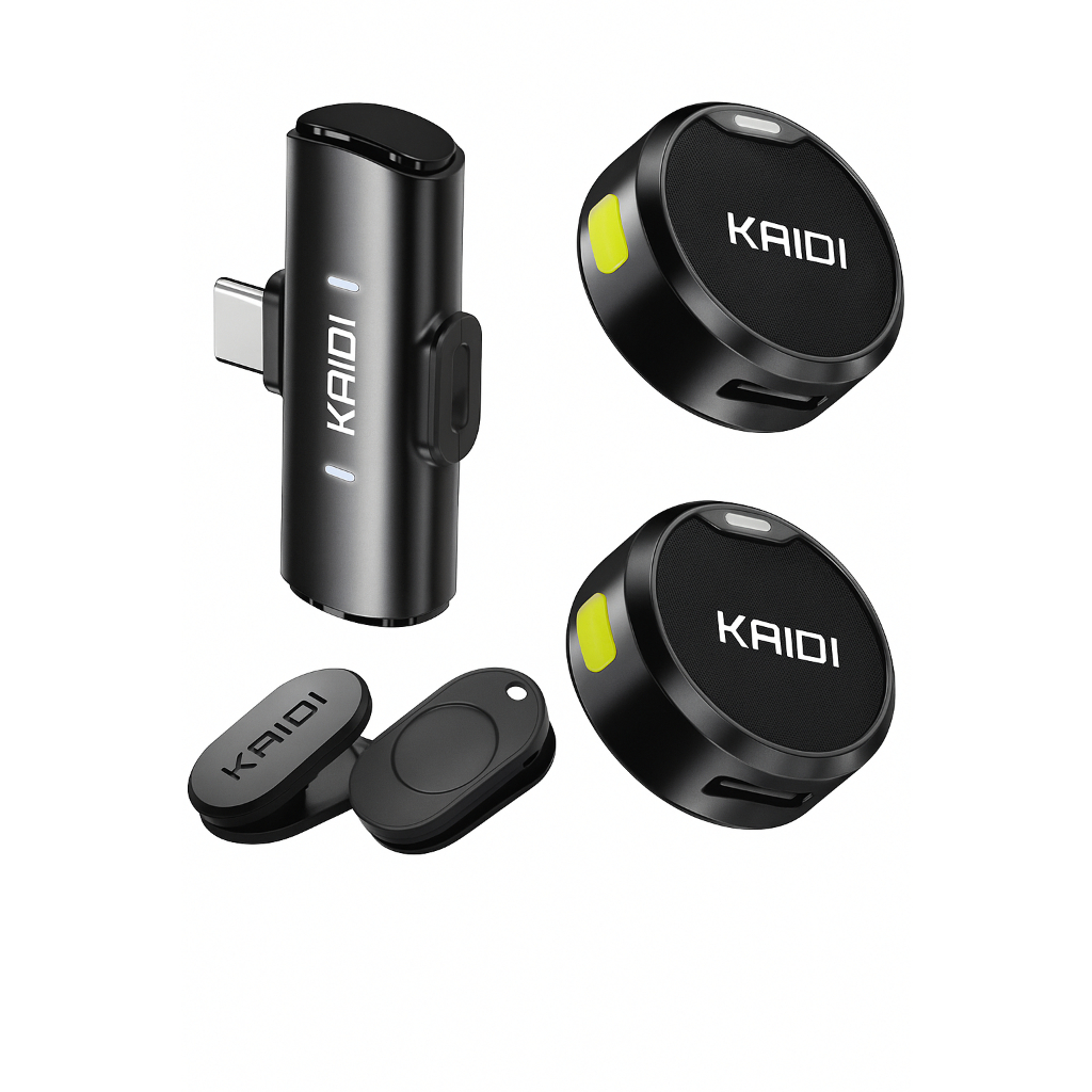 Microfone Lapela Sem Fio Duplo Kaidi Profissional Portátil Imã Redondo Anti Ruído Tipo C iPhone Gravação Celular