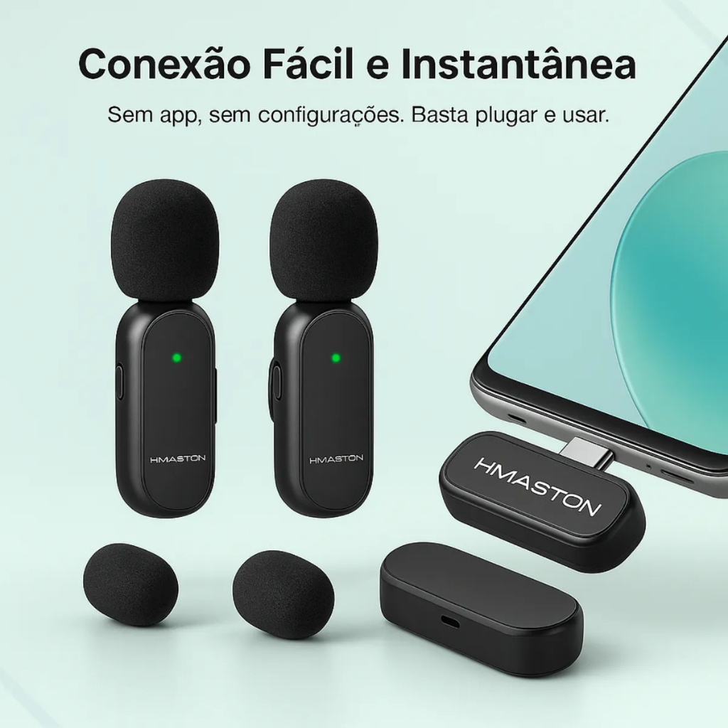 Microfone de Lapela Sem Fio H’Maston MK08 – Gravação Profissional para Celular Grave com qualidade profissional onde estiver! O microfone de lapela sem fio H'Maston MK08 é ideal para criadores de conteúdo, professores, jornalistas, influencers e profissionais que precisam de áudio limpo, portátil e confiável em qualquer ambiente. Perfeito como microfone para vídeos, podcasts, entrevistas, lives, TikTok, Reels, YouTube, aulas online ou chamadas em Zoom e Meet, o MK08 combina mobilidade, clareza de voz e fácil conectividade com celulares Android e iPhone. Destaques do Produto • Duplo microfone condensador sem fio (omnidirecional) com tecnologia bluetooth plug-and-play. • Compatível com iPhone (Lightning) e Android (Tipo-C) – não precisa instalar apps. • Cancelamento de ruído inteligente, ideal para ambientes externos ou barulhentos. • Até 6h de uso contínuo por carga + estojo carregador com 5 recargas extras (20h totais). • Alcance sem fio de até 20 metros com estabilidade de sinal. • Modo estéreo duplo: gravação com dois microfones simultâneos, perfeito para entrevistas e colabs. • Estojo compacto também funciona como powerbank 2A para emergências. • Microfone profissional com clipe de lapela, espuma anti-vento e LED de status. Conteúdo da Caixa • 2x Microfones Lapela Sem Fio H’Maston MK08 • 1x Receptor Tipo-C com adaptador Lightning • 1x Estojo de carregamento bivolt (300mAh) • 1x Cabo USB de carregamento • 2x Espumas anti-vento • 1x Manual do usuário Para que serve este microfone? • Microfone para podcast, TikTok, YouTube e Reels • Microfone para aula online, EAD e reuniões remotas • Microfone para celular Android ou iPhone • Microfone para entrevistas, gravação externa e vídeos profissionais • Microfone para criador de conteúdo, influencers e coaches Perguntas Frequentes (FAQ) 1. Funciona em iPhone e Android? Sim! O kit acompanha conector Tipo-C e adaptador Lightning, funcionando em praticamente todos os smartphones e tablets modernos. 2. O áudio é estéreo com dois microfones? Sim. Cada microfone grava separadamente. Ideal para podcast, entrevista, aula ou duas pessoas falando ao mesmo tempo. 3. A bateria realmente dura 6 horas? Sim. Cada microfone tem até 6h de autonomia, e o estojo de carregamento armazena energia para até 5 recargas completas (totalizando até 20h de uso). 4. Tem cancelamento de ruído automático? Sim. Ele possui redução inteligente de ruído ambiente, captando apenas sua voz e eliminando sons indesejados como vento e fundo. 5. É preciso instalar algum aplicativo? Não! Basta conectar o receptor no celular, ligar os microfones e pronto. É plug-and-play, simples e rápido. Garante já o seu! Garantia do vendedor: 30 dias