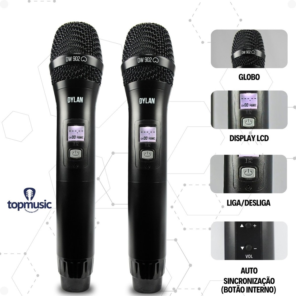 Microfone Sem Fio Dylan DW-902 Power UHF Recarregável Preto