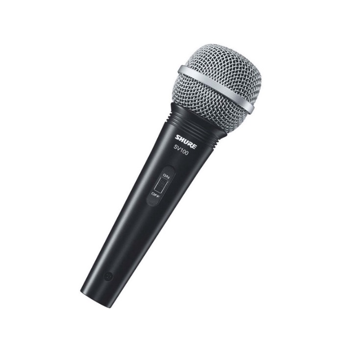 PRODUTO ORIGINAL COM 02 ANOS DE GARANTIA DA PROSHOWS (REVENDEDORA OFICIAL) O SV100 da Shure é a solução! Ideal para Igrejas gravações em estúdio podcasting apresentações shows ao vivo karaokês captação de instrumentos e muito mais! Seu Padrão polar Cardioide o torna ideal para os mais diversos tipos de usos. É unidirecional o que ajuda a reduzir a retroalimentação e amplia a resposta de frequência o que resulta numa qualidade sonora superior. Especificações: Modelo: SV100 Cabo: P10 4,5M Chave ON/OFF: Sim Conector: XLR (F) / P10 Cor: Preto Dimensões: 25.000 x 8.000 x 12.500 CM Impedância: 600 Ohms Resposta Frequência: 50Hz ~ 15KHz Sensibilidade: -52dBV/Pa ~ 1kHz Tipo: Cardioide Contém: 01 Microfone] 01 Cabo (4,57m) 01 Espuma *Imagens Ilustrativas