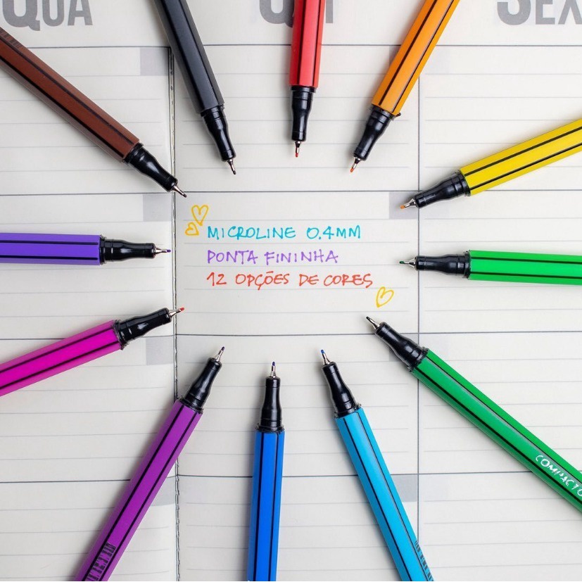 Microline é uma fineliner de ponta ultra-fina (0,4mm) e ultra-resistente com acabamento em metal de alta durabilidade, proporcionando um traço preciso, ideal também para uso com régua. A Microline Compactor é a caneta de ponta fina ideal para a escola, o trabalho e para o lazer, pois sua ponta permite colorir detalhes, fazer rascunhos e sublinhar com precisão. A carga de tinta tem o mesmo tamanho do corpo da caneta, garantindo muito mais durabilidade. Além disso, a tinta possui tecnologia cap-off, que não resseca mesmo se ficar destampada por algumas horas. Design moderno, corpo sextavado e tampa antiasfixiante são diferenciais que agregam ainda mais valor à Microline Compactor.