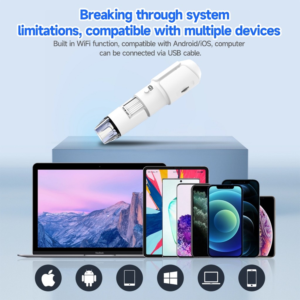 Microscópio WiFi embutido Este é um microscópio WiFi; Sinais WiFi integrados, pode ser carregado, não limitado pelo ambiente, suporte para tablets/fones inteligentes e suporte para foto/vídeo. Carregamento de interface USB, livre-se de problemas de cabos; ampliação 50x-1600x, operação fácil e conveniente; 8 luzes LED de alto brilho de 8 peças, dia e noite podem ser usadas; pode ser usado para impressão, pesquisa biológica, observação de aprendizado, Beleza e assim por diante. Nota: Este microscópio não pode observar microorganismos. Perguntas e respostas 1. Por que a conexão do microscópio é instável e incapaz de se conectar ao aplicativo? Primeiro, você deve garantir que este item seja totalmente carregado. Verifique se você está conectado primeiro ao microscópio WLAN antes de baixar o aplicativo. Se assim, desconecte o microscópio WLAN primeiro, faça o download do aplicativo e, em seguida, conecte-se ao microscópio WIFI (Flyscope_xxxx). 2. Não é possível abrir microscópio, sem necessidade de abrir microscópio, sem resposta do microscópio. Por favor, pressione e segure o botão do interruptor do microscópio por favor pressione e segure o botão do interruptor por 5 segundos. Se a luz do microscópio permanecer, indica que o microscópio foi ligado. 3. Por que a câmera está desfocada? Abriu-se a tampa da lente. Traga o objeto o mais próximo possível e gire a engrenagem no meio do microscópio para ajustar o foco até que o objeto fique o mais próximo possível da câmera e gire a engrenagem no meio do microscópio para ajustar o foco até que o objeto fique claro. Parâmetros do produto: Modo de conexão de conexão: WiFi embutido Faixa de comprimento Focal: 20-60mm Pixel da lente: 2 milhões Fonte de luz da lente de brilho: 8 LEDs Fonte de luz da lente: 8 LEDs Brilho ajustável Capacidade da bateria da bateria: 700 mAh Ampliação de ampliação: 50X-1600X Interface USB tipo c: carregamento tipo-c Taxa de quadro dinâmico: 20f/s Função de foto: suporte (JPG) Função de vídeo: suporte (MP4) Dispositivos compatíveis: compatíveis com ios9.0+ acima de telefones celulares Apple, iPad, Android 6.0+ acima Microscópio (sem suporte): comprimento total 152mm * diâmetro máximo 39,4mm Lista de envio de lista: Microscópio de microscópio *1 Manual de Instrução de manual *1 Caixa de cores * 1 Cabo de carregamento *1